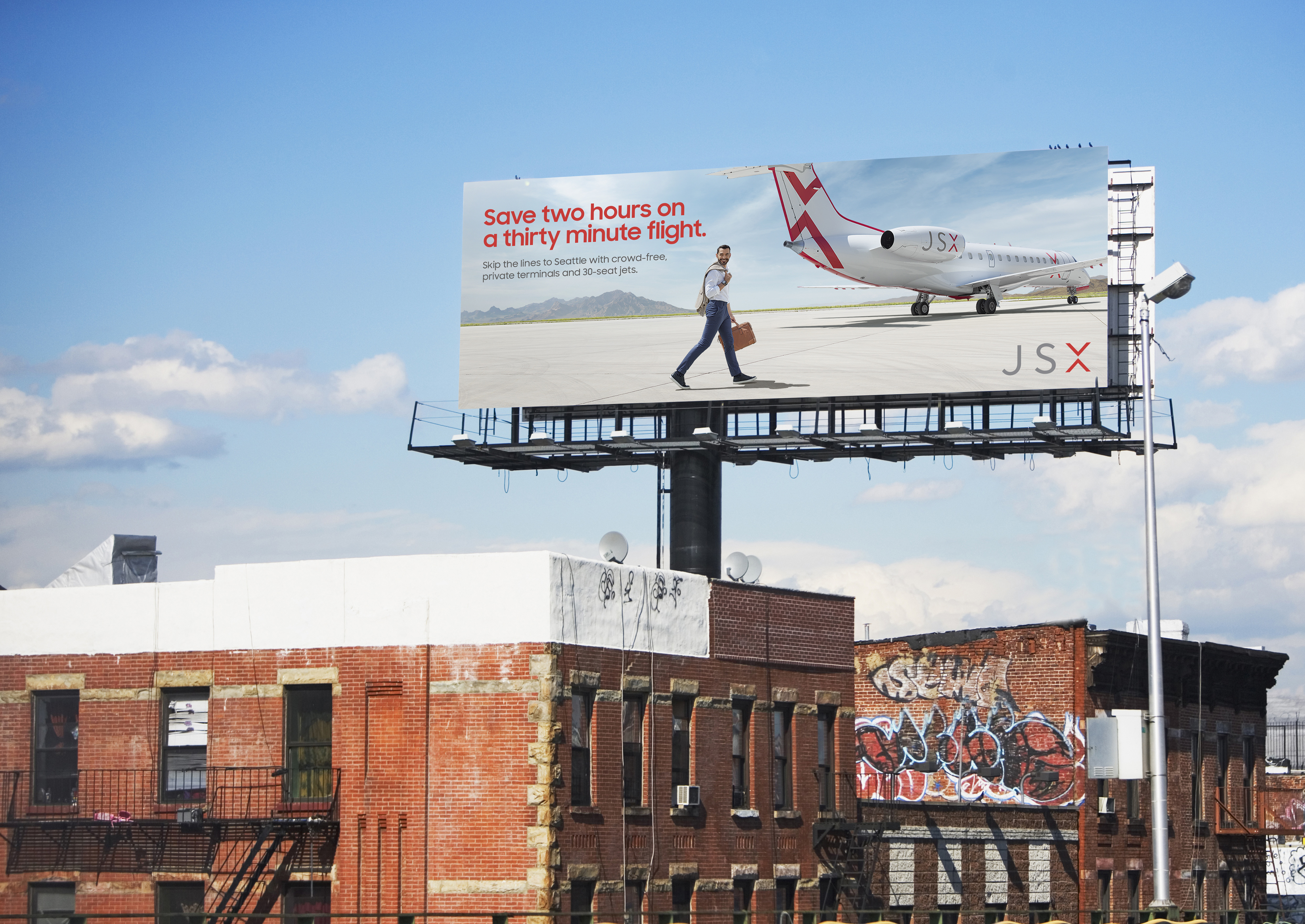 OOH Billboard in downtown POR targeted at business travelers letting them know they save time by flying with us.
